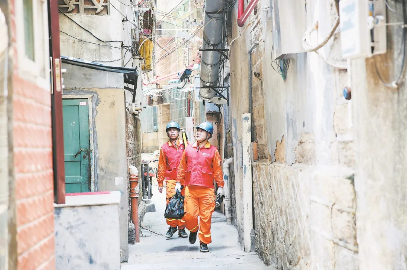 李春和同事走街串巷进行巡检,排查安全隐患。福建省委文明办供图