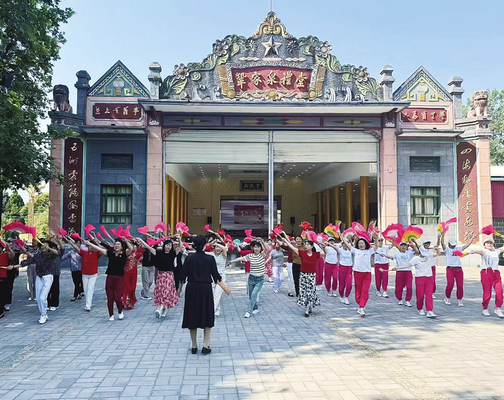陈仓区巩家泉村新时代文明实践站文艺文化志愿者在新风堂广场开展活动。
